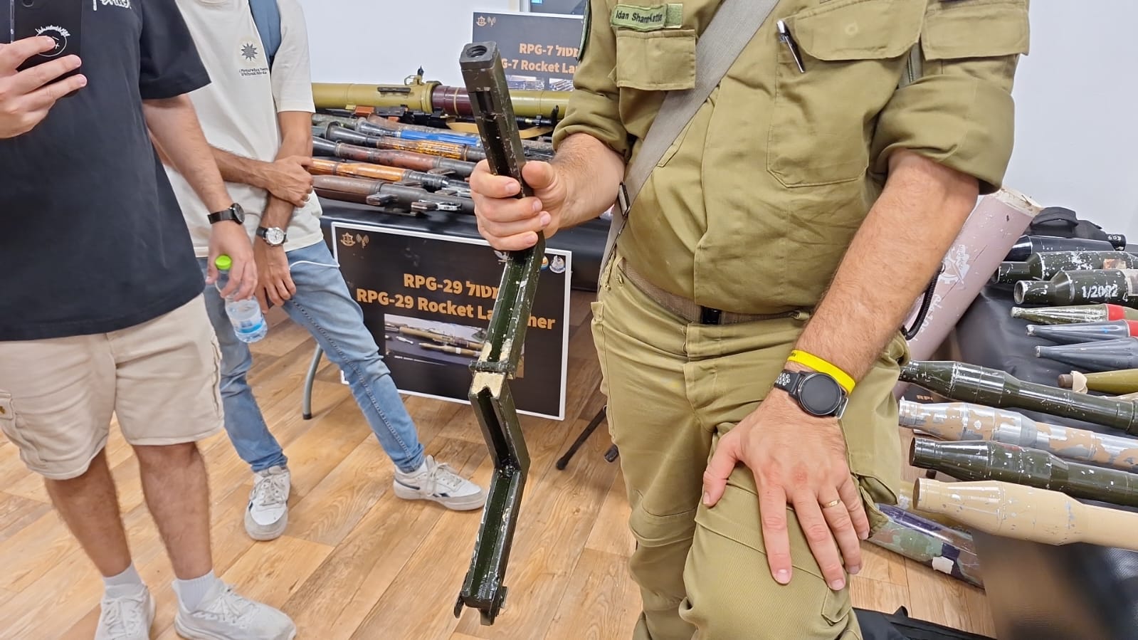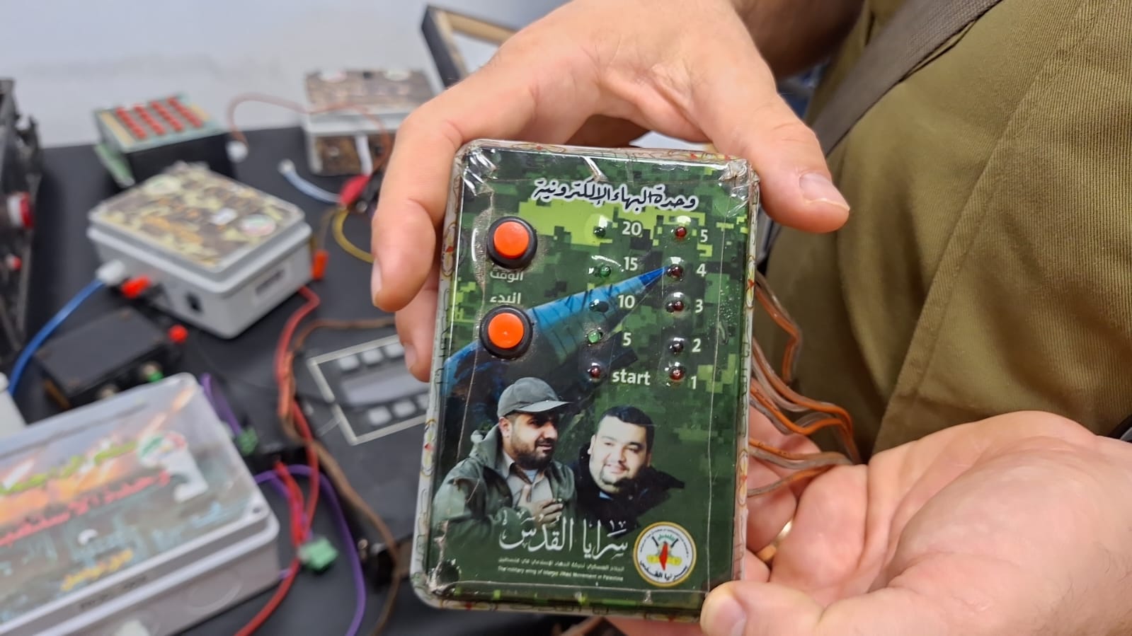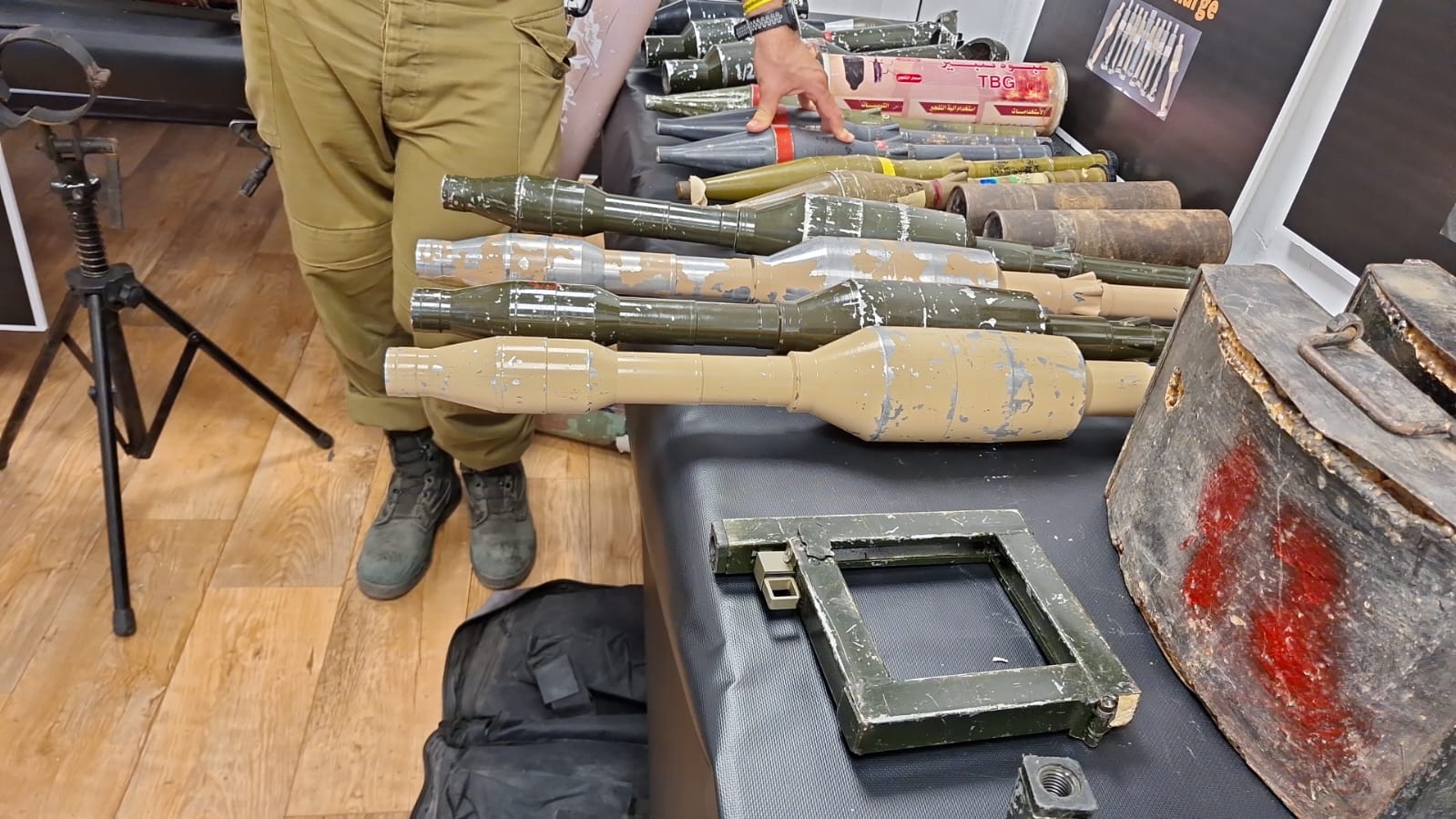 טנדרים של חמאס (צילום: לירן וינשטיין)אופנועי החמאס (צילום: לירן וינשטיין)יונדאי שנגנב לרצועה ומחבלים עשו בו שימוש בפלישה לכפר עזה, אותר בו מודיעין רב (צילום: לירן וינשטיין)כלי שפרצו איתו את אמצעי ההגנה בגדר הגבול (צילום: לירן וינשטיין)מטען הקרבה (צילום: לירן וינשטיין)מל"ט מתאבד מסוג 'וי טייל' נתפס בעזה (צילום: לירן וינשטיין)מערכת להפעלת חמישה מטענים (צילום: לירן וינשטיין)רקטות צפון קוריאניות (צילום: לירן וינשטיין)רקטה טרמוברי ששימשה נגד אמבולנס המוות (צילום: לירן וינשטיין)רחפן חקלאי המסוגל להחזיק 30 ק"ג נפץ (צילום: לירן וינשטיין)רובה בן לאדן למפקדים בכירים (צילום: לירן וינשטיין)קת של רובה שהגיע מאיראן (צילום: לירן וינשטיין)ערכות עזרה ראשונה של חמאס כמענה למחבלים שנפצעו (צילום: לירן וינשטיין)מערכת שיגור טילים (צילום: לירן וינשטיין)