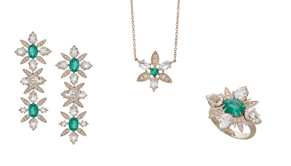 הירוק העמוק של אבני האמרלד משתלב עם יהלומים נוצצים וזהב אצילי, ויוצר מראה יוקרתי.