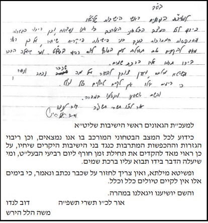מרן הרב לנדו והרב הירש פרסמו מכתב הקורא לראשי הישיבות להקדים את פתיחת 'זמן חורף': "המצב הבטחוני המורכב וריבוי הגזרות וההכפשות המתרבות כנגד בני הישיבות – על כן ראוי מאד להקדים את תחילת זמן חורף ליום רביעי, ומי שיעלה הדבר בידו תבוא עליו ברכת שמים"