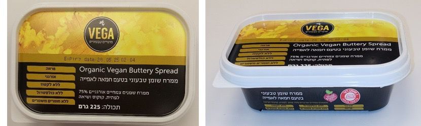 שם המוצר: ממרח שומן טבעוני בטעם חמאה 225 גרם.