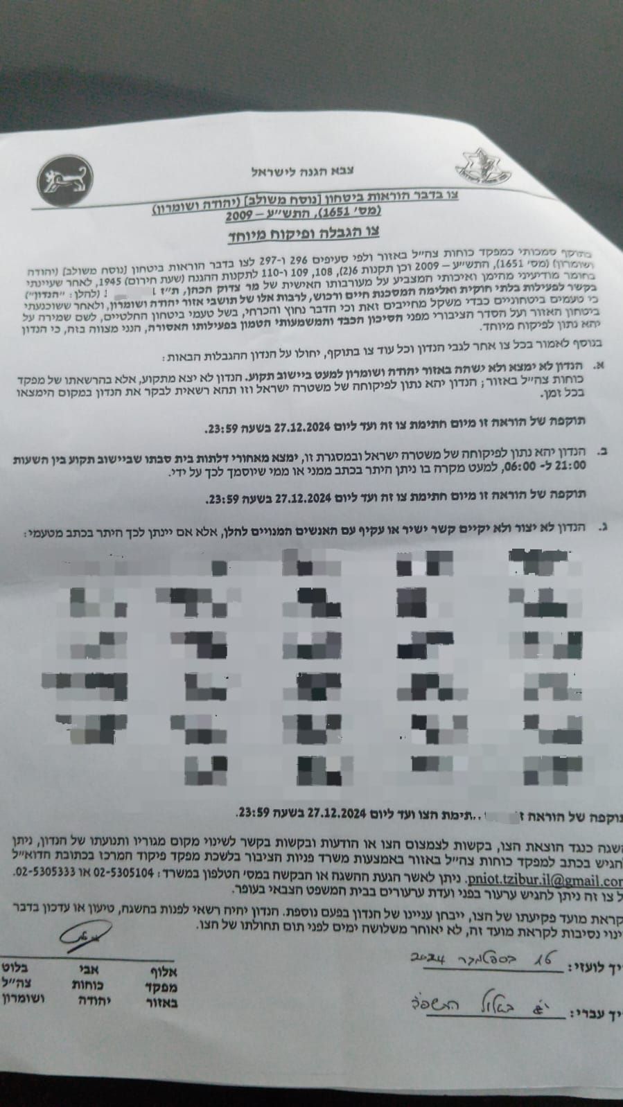 החשש להרס בגבעות: צו מנהלי ניתן היום (חמישי) לצדוק הכהן תושב גבעת 'צור הראל' בבנימין. הצו נחתם על ידי אלוף פיקוד מרכז אבי בלוט לתקופה של ארבעה חודשים.