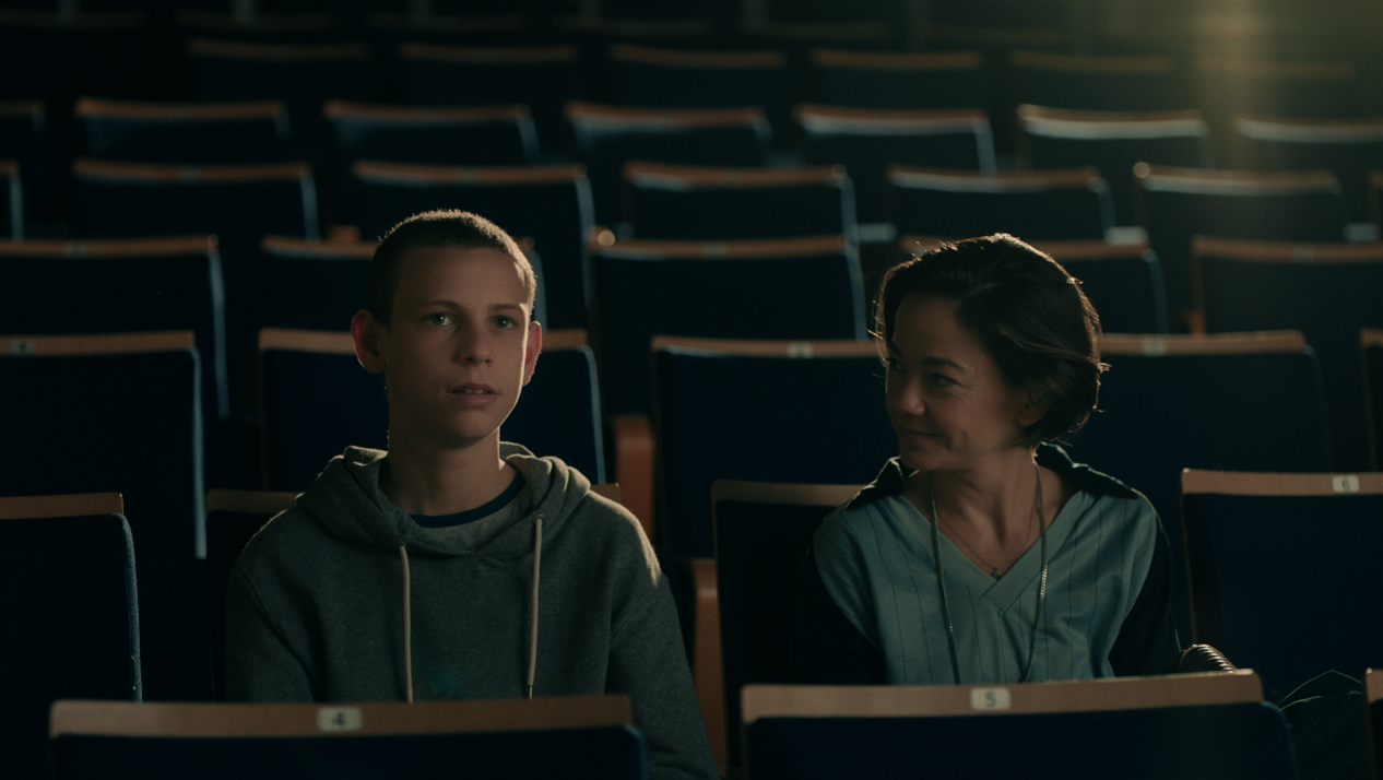 (בת חן סבג וגיא מנסטר באולם התיאטרון. מורה לדרמה, תלמיד לחיים. מתוך ״ילד רע״ באדיבות HOT, SIPUR וטדי הפקות)
