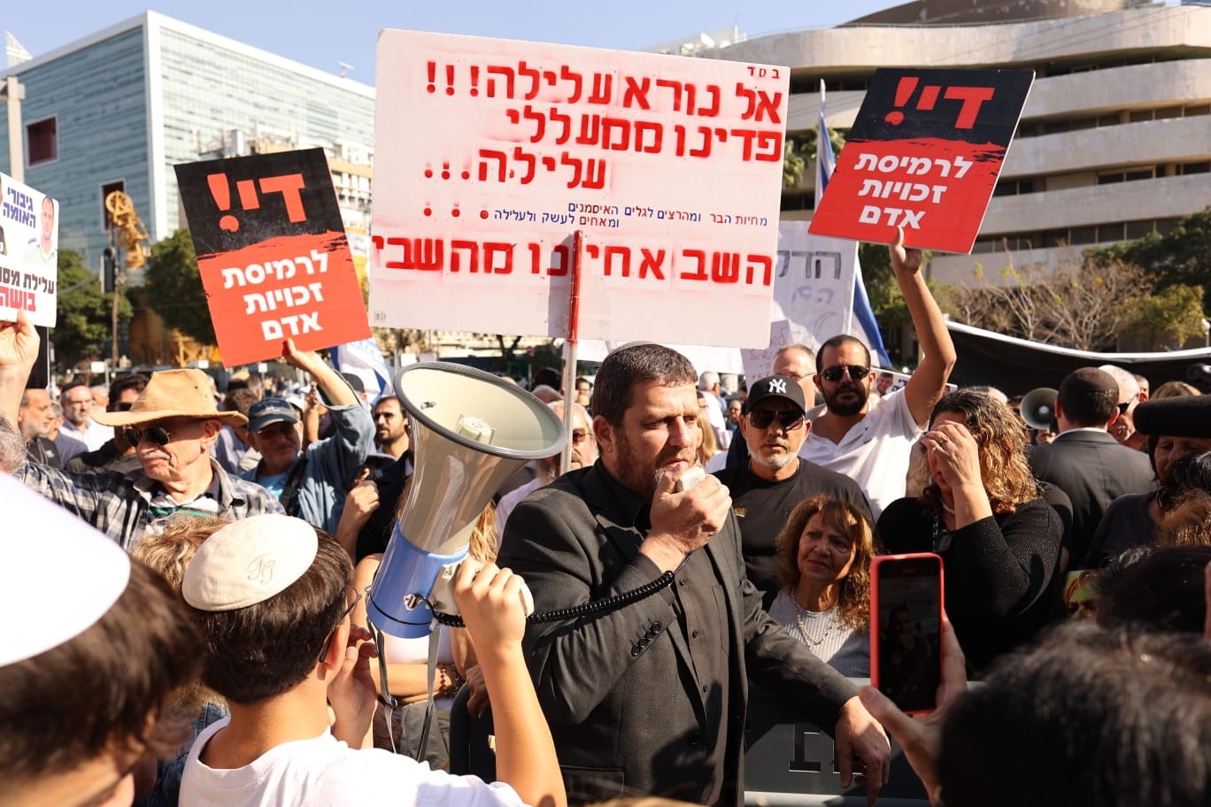 חבר הכנסת עמית הלוי מהליכוד בהפגנה