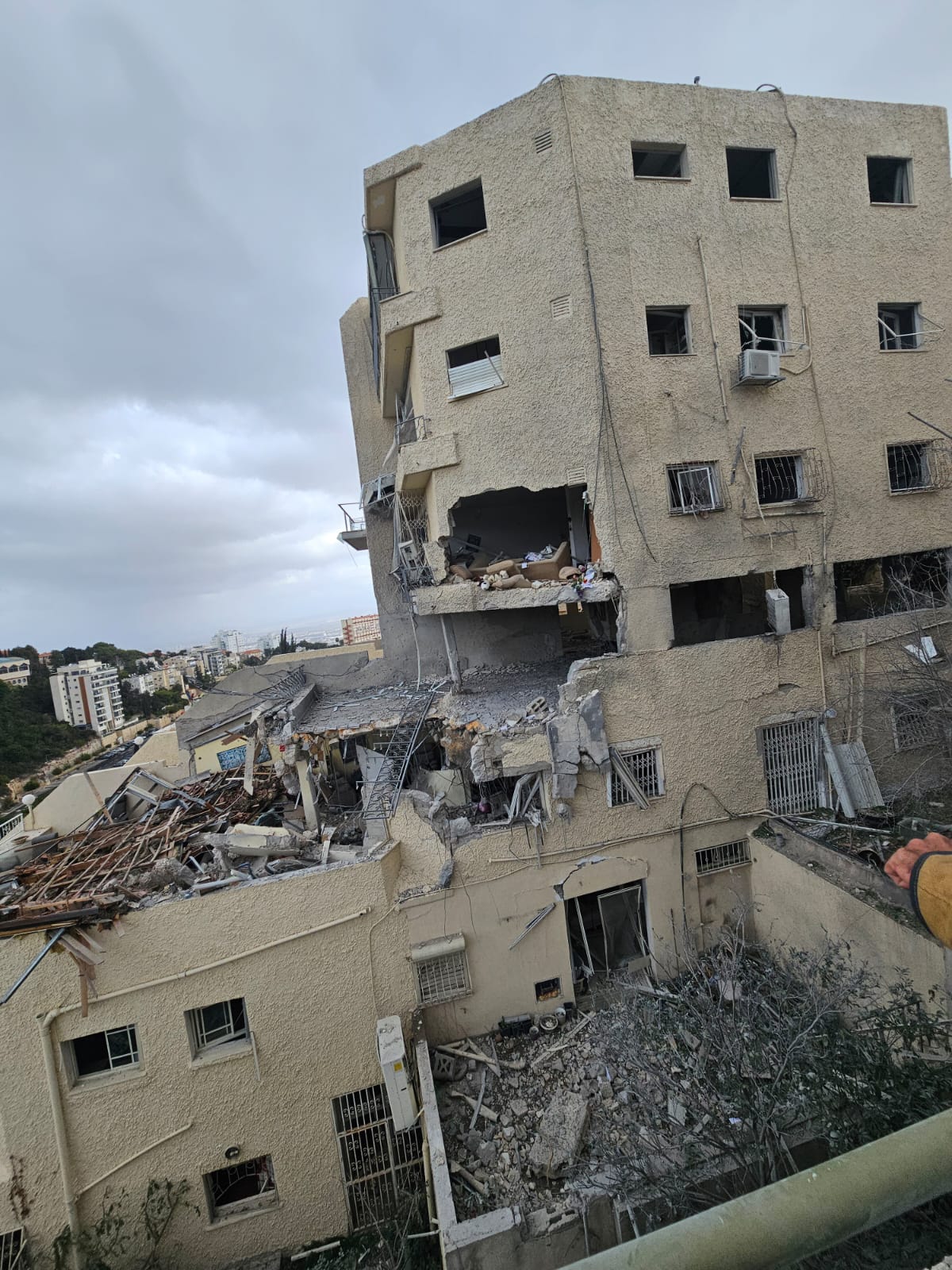 צוותי מד"א דיווחו על פגיעה ישירה בבניין בן 5 קומות בחיפה, כשזוהה נזק רב למבנה. הצוותים פעלו לסריקה במבנה, חילצו 3 נפגעים במצב קל ופעלו לניתוק מקורות אנרגיה. במאמץ משותף עם משטרת ישראל ושאר הגורמים החבירים פעלו לזיכוי הזירה ולשלילת לכודים נוספים.