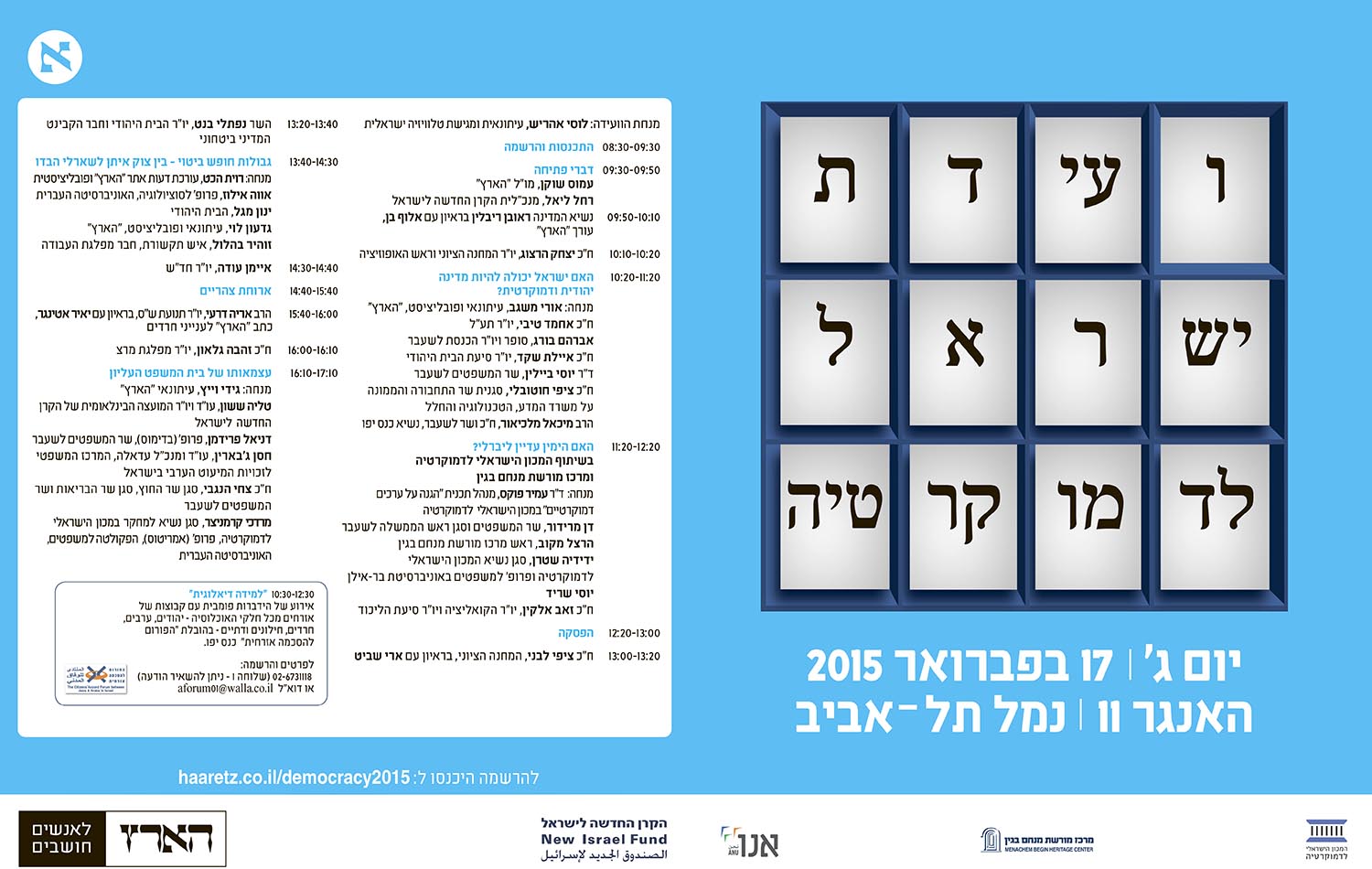 בעוד שלושה שבועות יקיים עיתון הארץ את 'ועידת ישראל לדמוקרטיה' בשיתוף ובחסות הקרן החדשה לישראל. מנכ"לית הארגון רחל ליאל, אפילו תשא דברי ברכה במושב הפתיחה של הכנס – יחד עם מו"ל הארץ עמוס שוקן. על פי התוכנייה צפויה איילת שקד להשתתף בפאנל עם אברום בורג, יוסי ביילין וציפי חוטובלי, ואילו ינון מגל יתעמת עם גדעון לוי וזוהיר בהלול. נפתלי בנט צפוי לנאום במשך 20 דקות, בין המושבים השונים של הכנס.