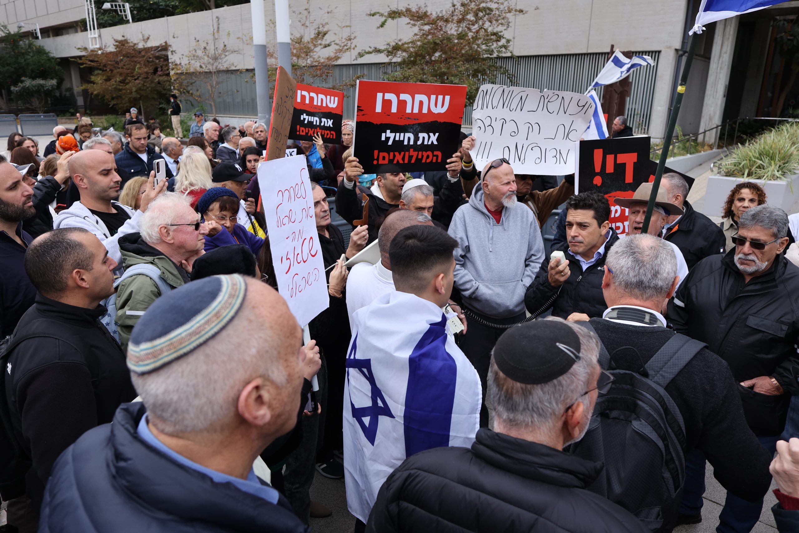 מאות מפגינים הגיעו גם הבוקר (רביעי) להפגין מול בית המשפט המחוזי בתל אביב. ההפגנה נערכת במקביל לדיון שמתקיים בבית המשפט לבקשת הפרקליטות להאריך את מעצרם של אלי פלדשטיין והנגד א' עד תום ההליכים. את ההפגנה ארגנו חבריו של א' ומשתתפים בני משפחות העצורים ואישי ציבור שונים שבאו לחזק את העצורים ואת בני משפחותיהם.