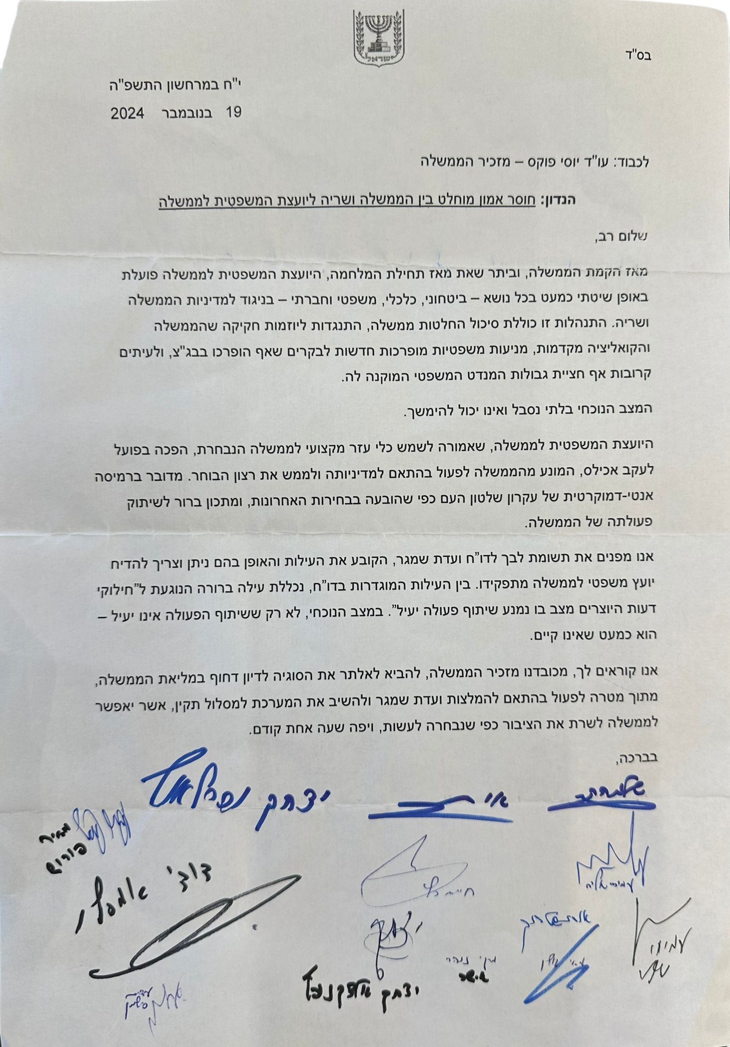 רשימת השרים שלא חתמו על המכתב של קרעי