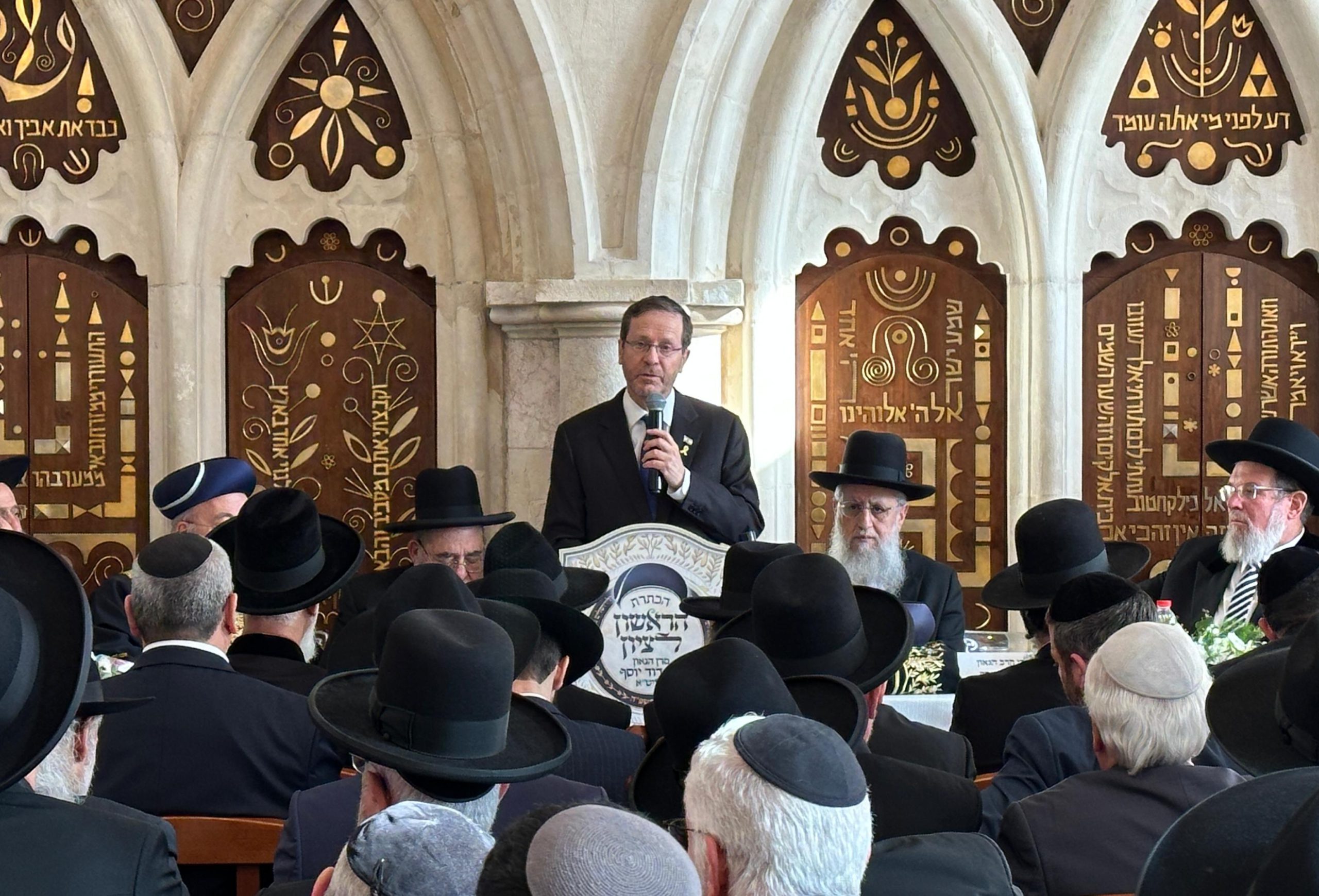 נשיא המדינה יצחק הרצוג השתתף גם הוא בטקס וציין בנאומו: "בימים הקשים האלה – כשאחינו ואחיותינו עדיין שבויים בידי האויב האכזר – בסבל נורא, כשקהילות שלמות עקורות מבתיהן, כשמאות אלפי בנינו ובנותינו עדיין נלחמים בגבורה, ובעיקר כשנדמה שהחברה הישראלית נקרעת מבפנים – תפקידו של הראשון לציון מקבל משמעות עמוקה ביותר״.