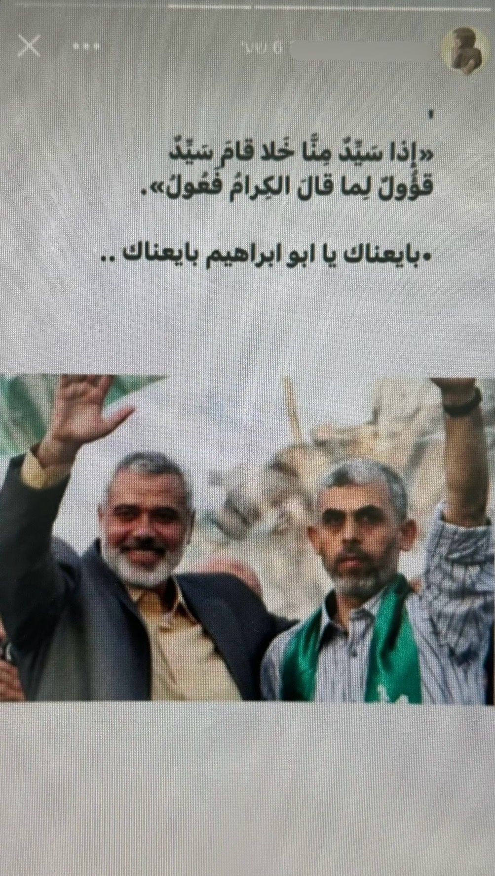 ממשיכה את דרכו: כתב אישום הוגש היום (ראשון) נגד תושבת מחנה הפליטים שועפט, בתו של מחבל שביצע פיגוע דריסה לפני כשנתיים בכביש 1 וחוסל על ידי שוטרים, שנשבעה שאמונים לרב המרצחים יחיא סינוואר ופרסמה דברי הסתה, אהדה, שבח והלל, תוך הזדהותה עם ארגון הטרור 'חמאס'.