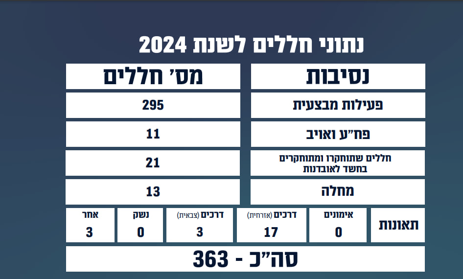 בין היתר צה"ל מפרסם נתונים קשים נוספים לגבי מספר החללים שתוחקרו ומתוחקרים בנסיבות חשד לאובדנות, כשבשנת 2024 ישנם 21, ואילו בשנת 2023 ישנם 17.