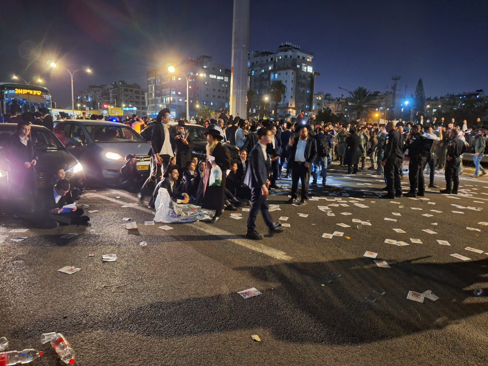 הערב התקיימה בכניסה לבני ברק הפגנה בלתי חוקית ע"י אנשי הפלג הירושלמי נגד חוק הגיוס, שוטרים שהגיעו למקום נאבקו במפגינים תוך גדי שהם מפנים את התנועה לדרכים חלופיות. במהלך ההפגנה נרשמו עימותים קשים השוטרים למפגינים שהתיישבו על הכביש וחסמו עורק ראשי בשעה סואנת וביום חמישי הידוע כיום עמוס.
