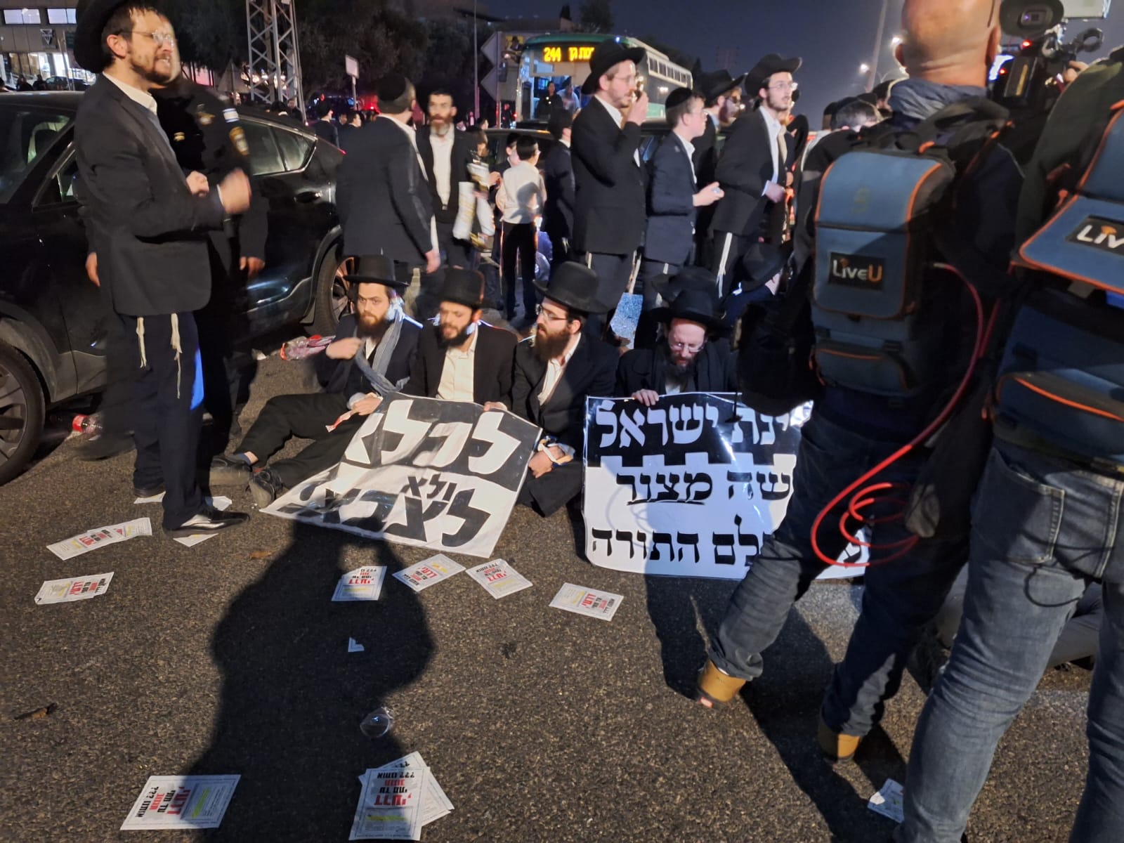 הערב התקיימה בכניסה לבני ברק הפגנה בלתי חוקית ע"י אנשי הפלג הירושלמי נגד חוק הגיוס, שוטרים שהגיעו למקום נאבקו במפגינים תוך גדי שהם מפנים את התנועה לדרכים חלופיות. במהלך ההפגנה נרשמו עימותים קשים השוטרים למפגינים שהתיישבו על הכביש וחסמו עורק ראשי בשעה סואנת וביום חמישי הידוע כיום עמוס.