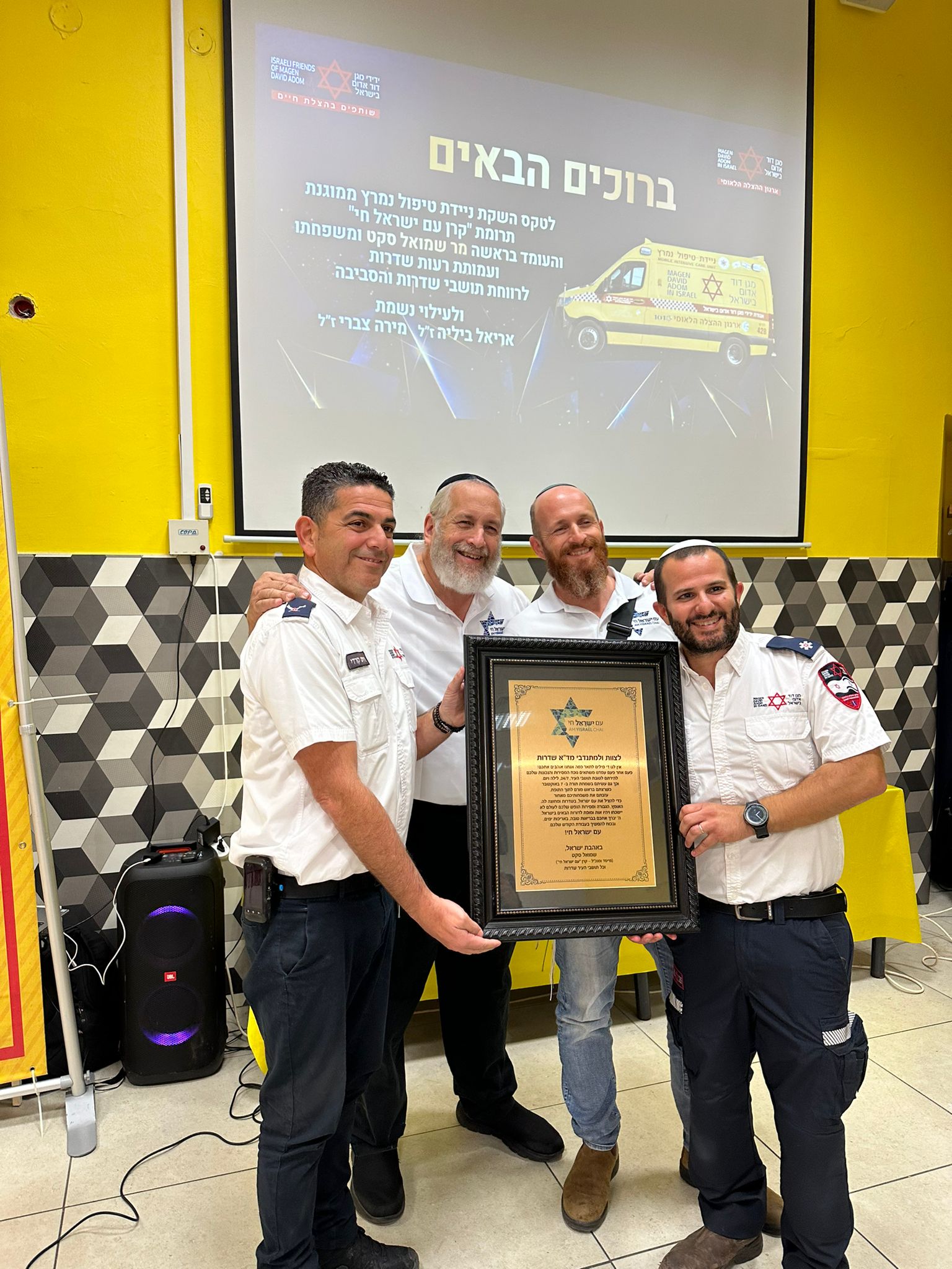 בטקס ההשקה והסרת הלוט שהתקיים בשדרות השתתפו ראש העיר אלון דוידי, סגן ראש העיר אלעד קלימי, מנכ"ל עמותת רעות יניב צברי, יו"ר קרן 'עם ישראל חי' שמואל סקט, והנהלת מגן דוד אדום.