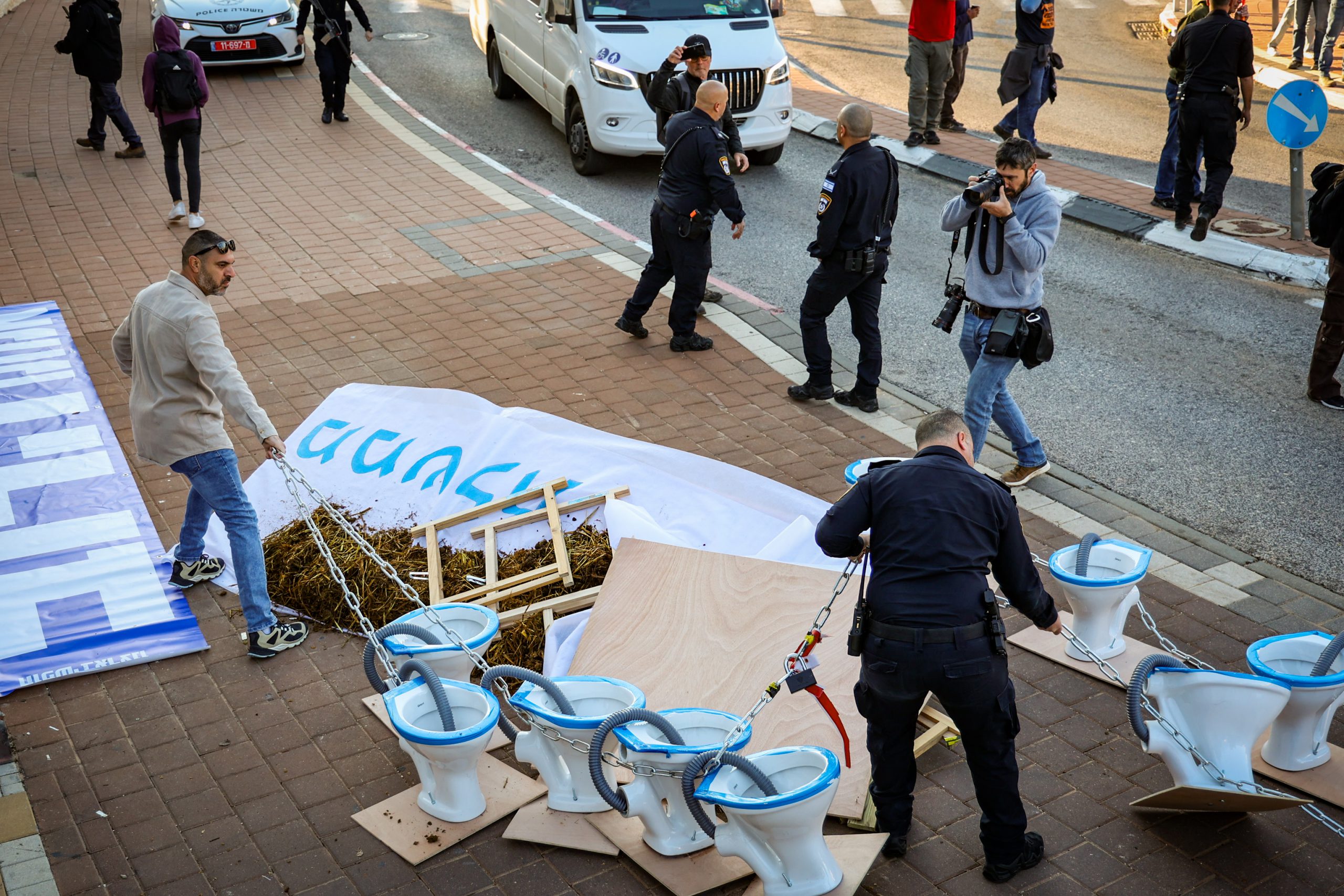 המשטרה הרחיקה את המוחים מפתח הבית למרחק נדרש ותנועת כלי הרכב בציר מתנהלת באופן בטוח.