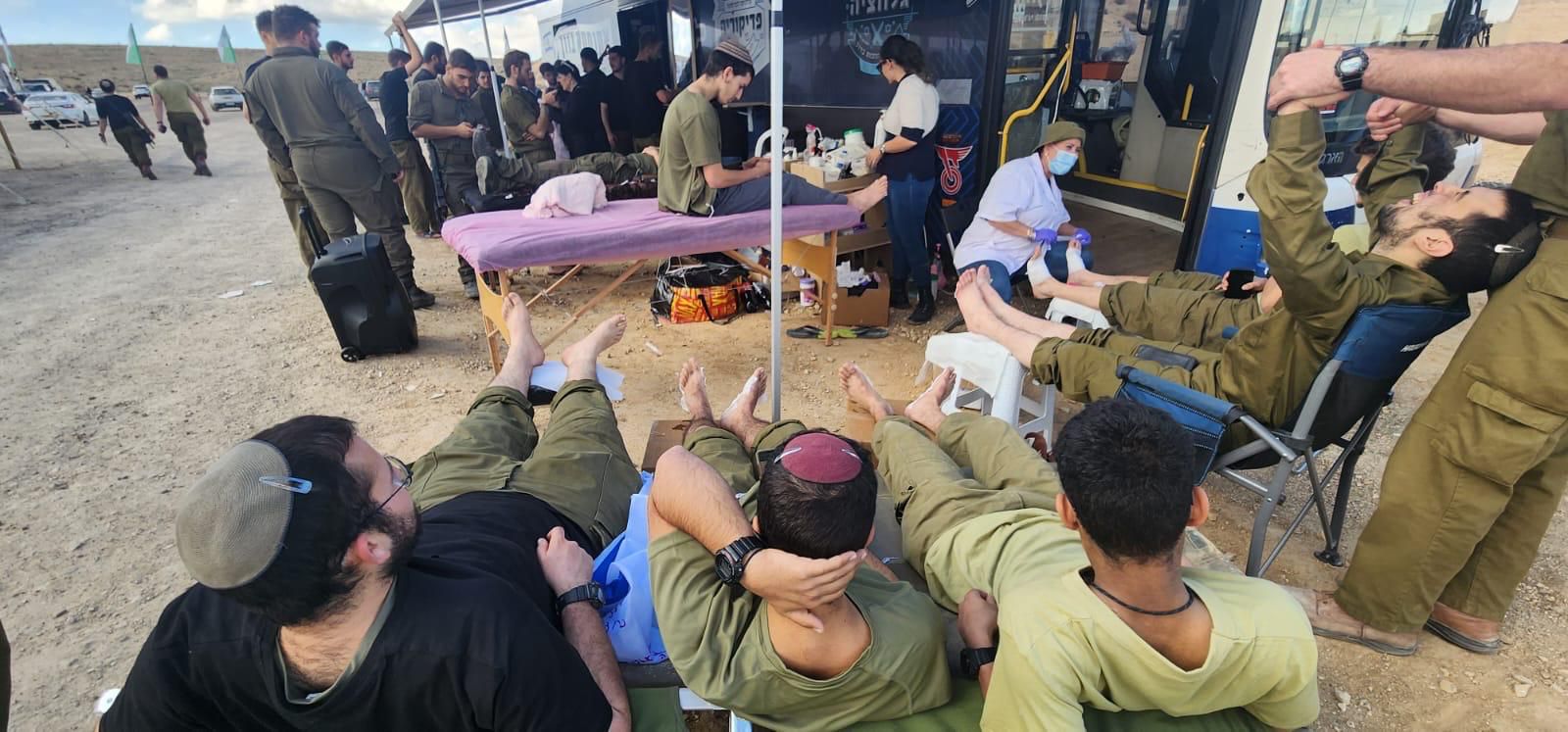 שירה מיגדל, בת 45, תושבת אבן יהודה, פדיקוריטסית רפואית במקצועה לא נחה לרגע, היא מגיעה לגבול רצועת עזה ומקבלת את הלוחמים שיוצאים מהרצועה לטיפול רגליים ופנים עמוק לאחר השבועות הארוכים בהם לא התקלחו, לא חלצו נעליים וחזרו מפויחים משדה הקרב.