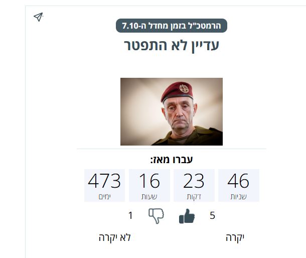 עדכון: ב-21 בינואר 2025, 473 יום אחרי המחדל הודיע הרצי הלוי על התפטרות.