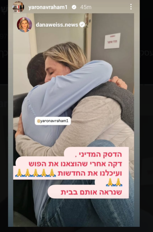מאוחר יותר צירפה דנה ויס בשיתוף עם הפרשן ירון אברהם תמונה של שניהם מתחבקים תחת הכיתוב, "הדסק המדיני דקה אחרי שהוצאנו את הפוש ועיכלנו את החדשות", וחטפה ביקורות של לעג ברשת בעקבות הציניות והחשיבות העצמית המופרזת.
