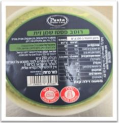 שם המוצר: רוטב פסטו שמן זית. משקל: 250 גרם. שם היצרן: פסטה דלה קזה. תאריכי תפוגה: כל תאריכי התפוגה של עד וכולל 26.06.25.