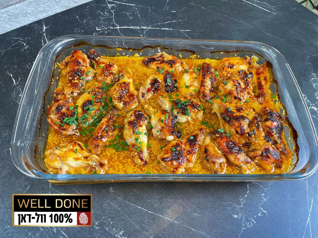 רוטב פיקנטי וטעים של צ'ילי, שום ושומשום שעוטף את הכנפיים העסיסיות של 'וול דאן' ונותן להם פריכות ממכרת מבחוץ.