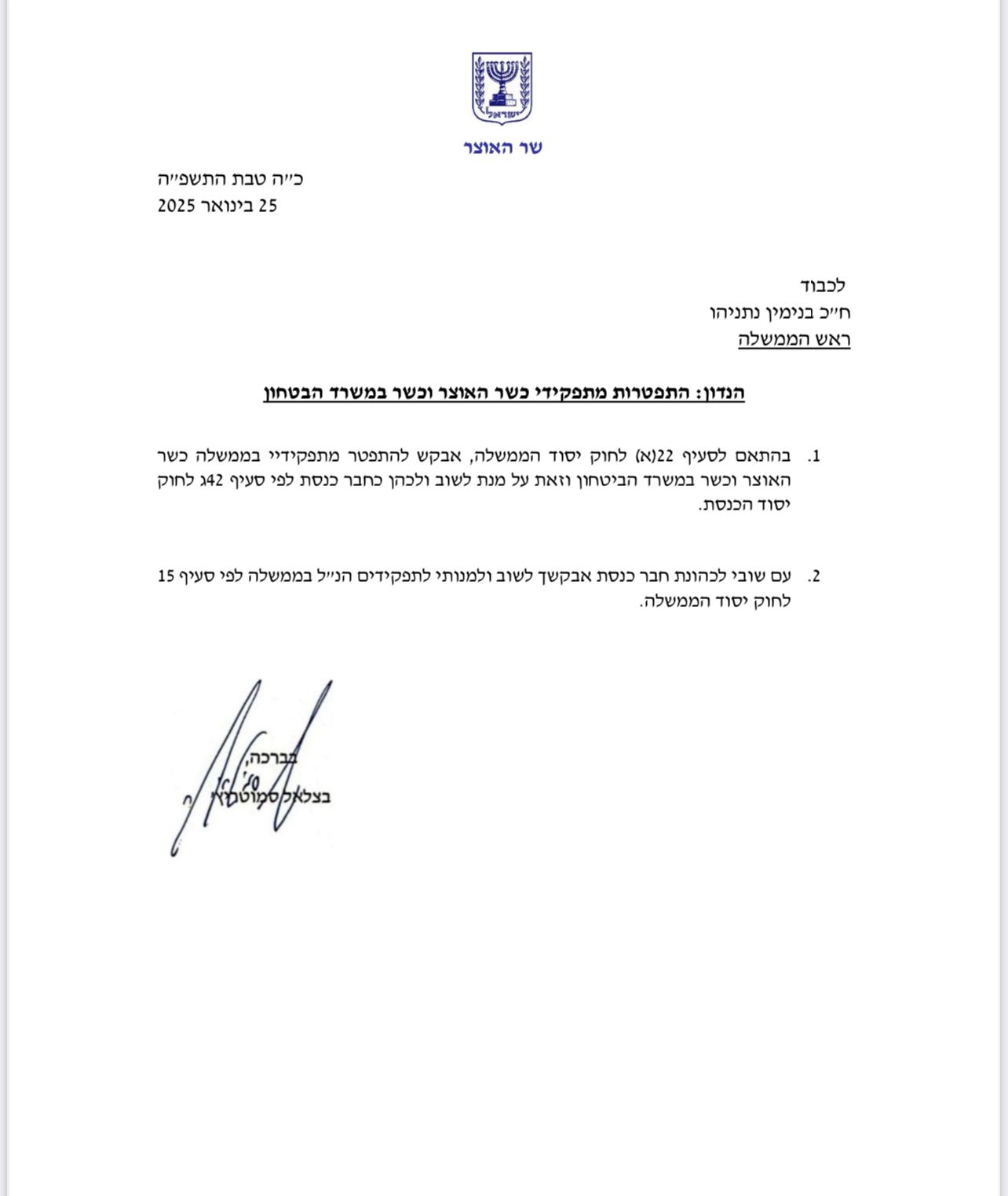 ישוב בעוד יומיים: יו"ר הציונות הדתית ושר האוצר בצלאל סמוטריץ' הגיש הערב (שבת) מכתב התפטרות ויחזור למליאה ביום שני כח"כ.