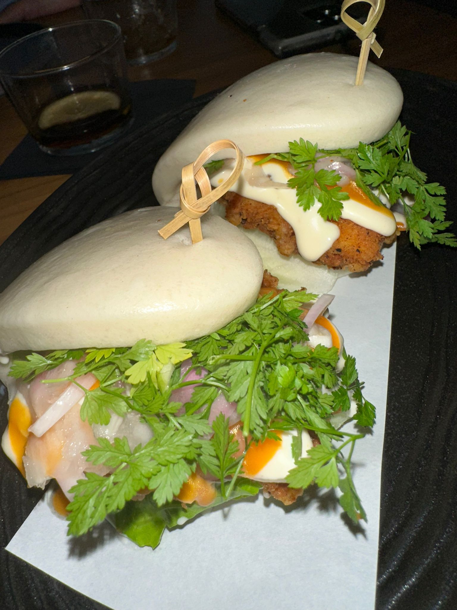 מנה נוספת שהזמנו היא מנת הסקאנה הגה באן ספייסי. 2 באנים במילוי מוסר ים בציפוי פריך, חסה, איולי יוזו שהיה טעים במיוחד, שאלוט מוחמץ ורוטב טוגראשי. הלחמניה היתה נימוחה ומאודה היטב, והשילוב עם הדג בציפוי הקריספי, סיפק ביס מושלם (110).