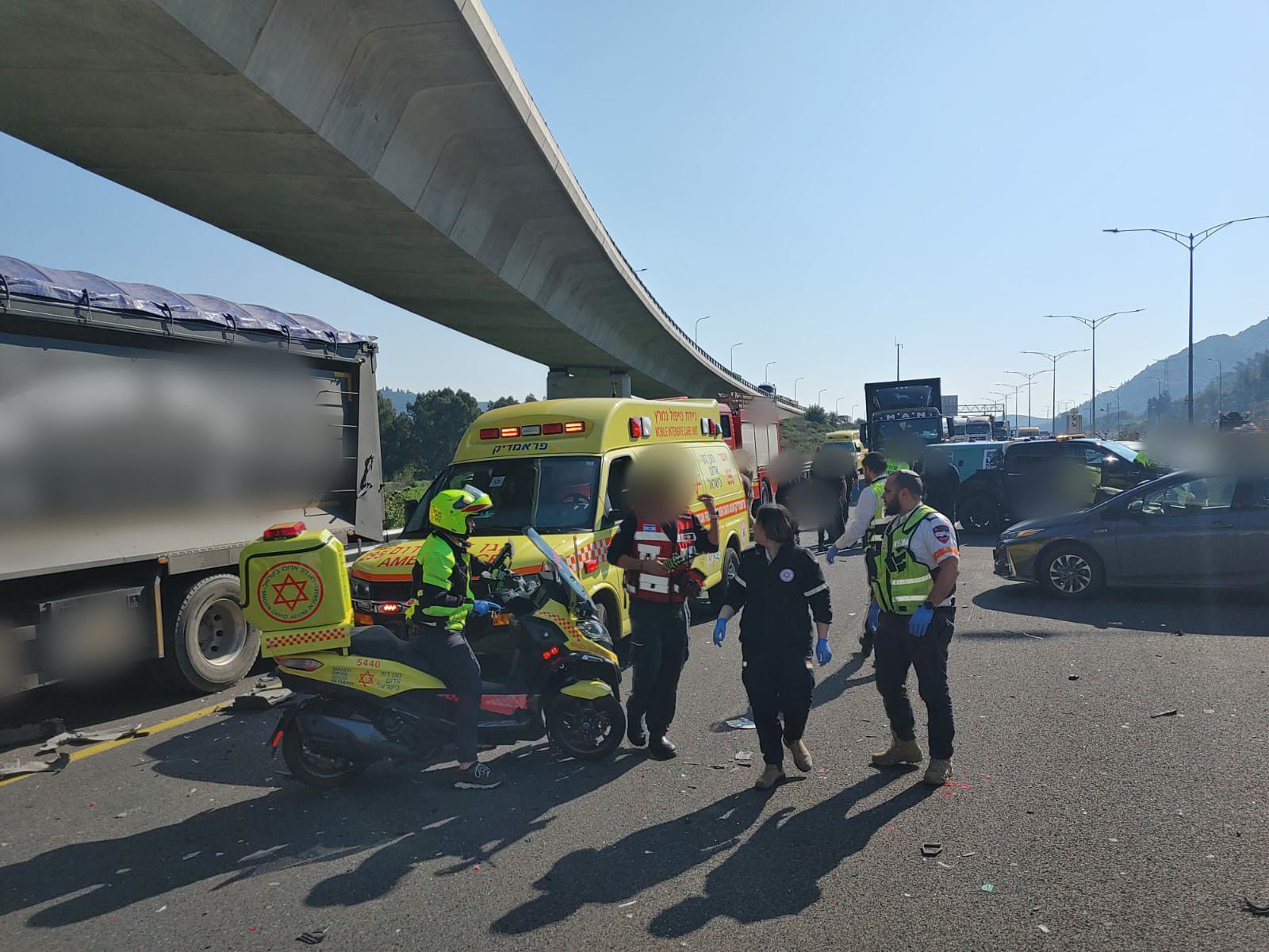 פראמדיק מד"א עופר ויניק וחובש רפואת חירום מיחידת האופנועים של מד"א ישי לוי סיפרו: "מדובר בתאונת דרכים קשה בין 2 כלי רכב ומשאית עם פגיעות פח קשות מאוד. הגענו למקום בכוחות גדולים וראינו 8 פצועים, בהם תינוק כבן שנתיים ואישה כבת 40 כשהם מחוסרי הכרה, ללא דופק וללא נשימה וסובלים מחבלות קשות בראש ובגפיים. מיד ביצענו בדיקות רפואיות, אבל הפציעה שלהם הייתה קריטית ונאלצנו לקבוע את מותם במקום. בנוסף, הענקנו טיפול רפואי שכלל חבישות, עצירת דימומים ומתן תרופות ופינינו לבתי החולים 6 פצועים, בהם פעוט כבן 3 וגבר כבן 40 במצב קשה עם חבלות בראש ו-4 פצועים במצב קל."