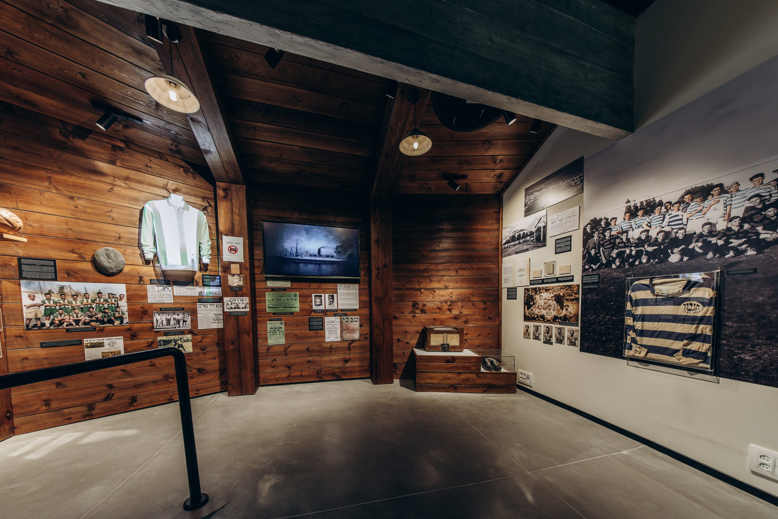 המוזיאון מציג חולצה מהעונות הראשונות, תמונות ישנות וכדור עתיק שנותנים לך את התחושה של מסע בזמן. משם עוברים ל-1955 אז הגיע הצבע הירוק למכבי. מקום מיוחד מוקדש לתואר הראשון גביע המדינה ב-1962 אחרי ניצחון 2:5 בגמר על מכבי תל אביב.