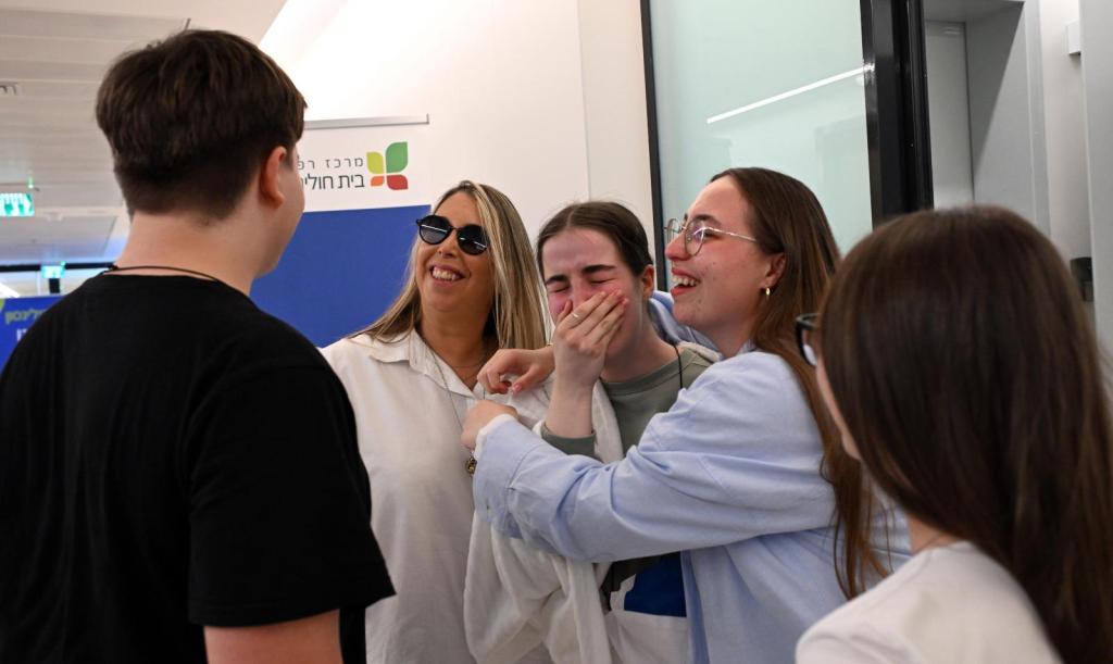 אחרי שנאלצו להיפרד מחברתן: לירי אלבג, דניאלה גלבוע, קרינה ארייב ונעמה לוי ששוחררו מהשבי בשבת האחרונה התאחדו היום (חמישי) בבית החולים עם אגם ברגר, התצפיתנית האחרונה ששוחררה היום משבי החמאס.