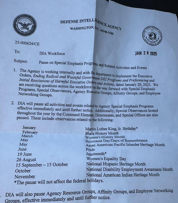 במסגרת ההחלטה יפסיק משרד ההגנה של ארה"ב לציין שורה של אירועים, ביניהם חודש ההיסטוריה השחורה, חודש הגאווה, יום האישה ובנוסף לכך גם יום השואה.