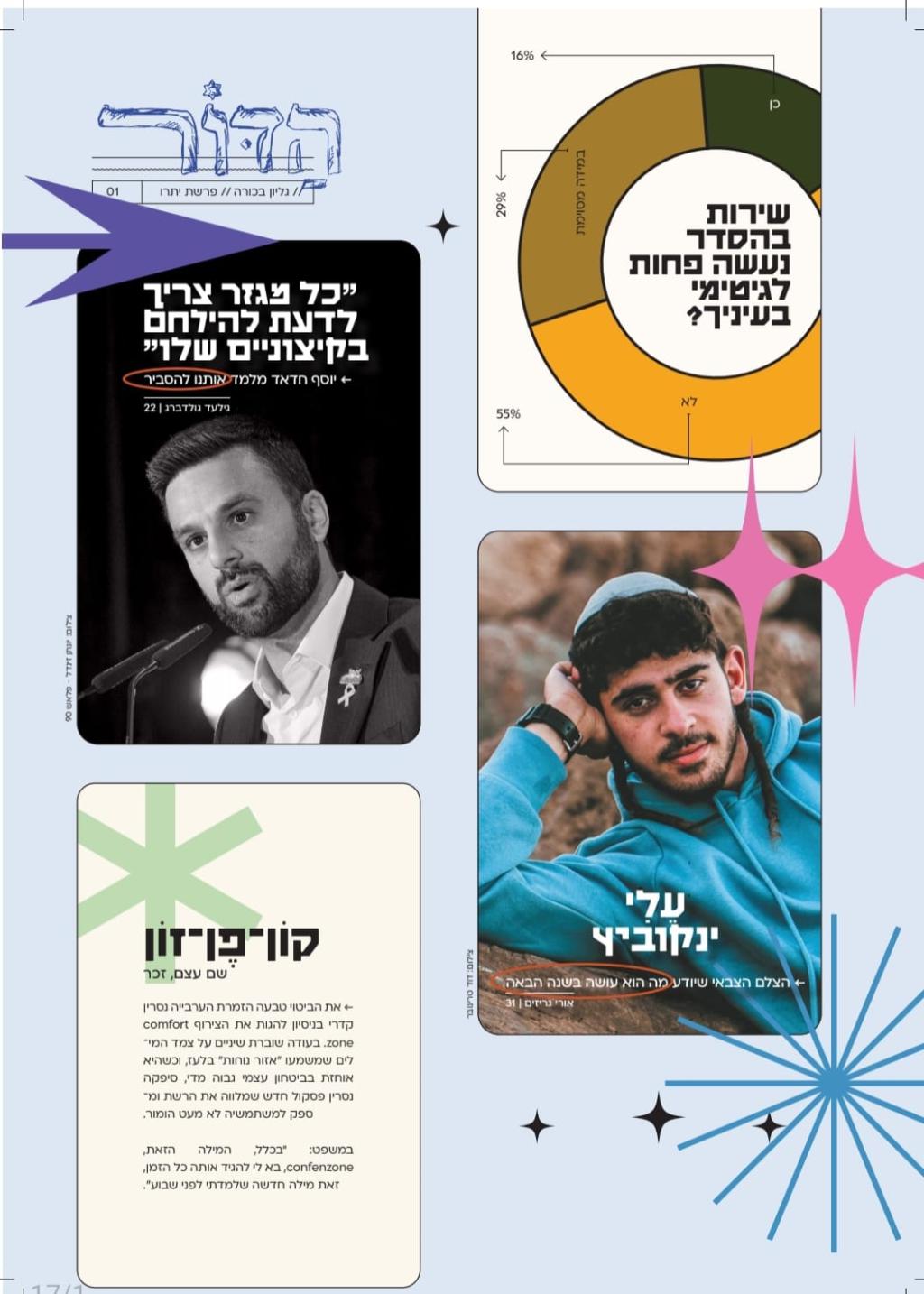 "רשימת הנושאים שהכנו תטלטל את המגזר", אומר גילעד גולדברג, העורך הראשי. "אנחנו עובדים על ההקמה של הדבר הזה כבר חודשים ארוכים, ויש לנו לא מעט דברים שאנחנו מעוניינים להעלות על סדר היום. המלחמה האחרונה הוכיחה שדור הניצחון, שכולם קראו לו דור הטיקטוק, קם לתחייה – הוא הוכיח את עצמו בשדה הקרב, והוא רוצה להשמיע את קולו גם בשדה הדעות. אפשר לחוש תסכול של רבים בתחומים רבים, ואנחנו רואים נר לרגלינו את הצורך להציף נושאים בוערים וללבן מחדש סוגיות שמעסיקות את ליבת הציבור הדתי-לאומי".