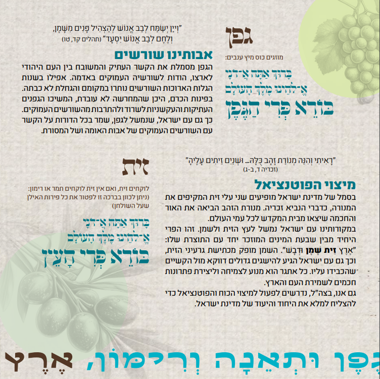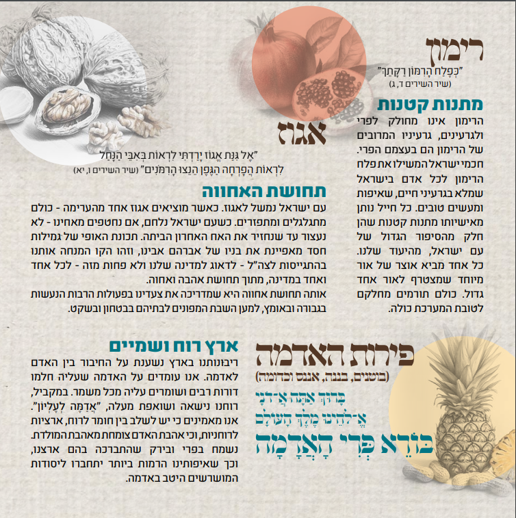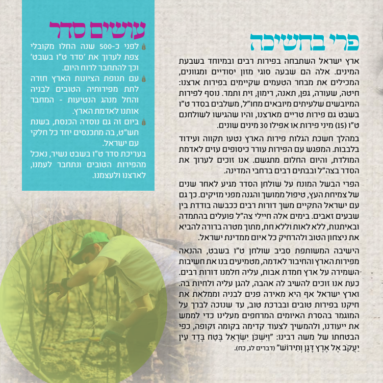 ט"ו בשבט זה חג שלא תמיד ברור מה צריך לעשות בו, לא לכולם מתאפשר לצאת ולטעת עץ אבל כולם ישמחו לאכול מפירות ארצינו המבורכת, לברך ברכות ולשיר שירי ארץ ישראל הישנה והטובה.