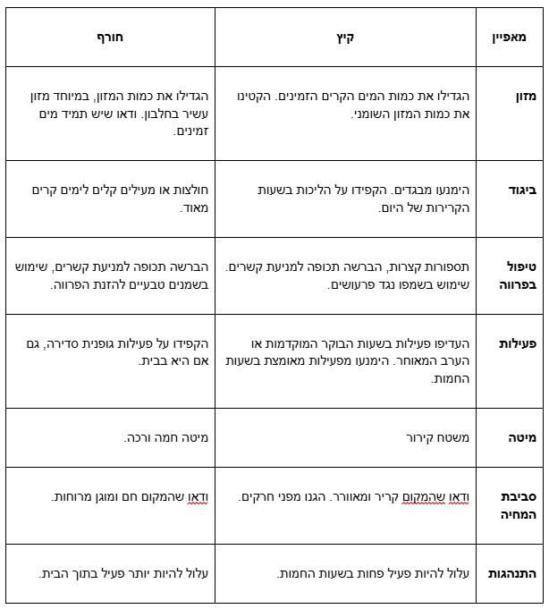 התאמה לעונות השנה – דואגים לנוחות ולבריאות