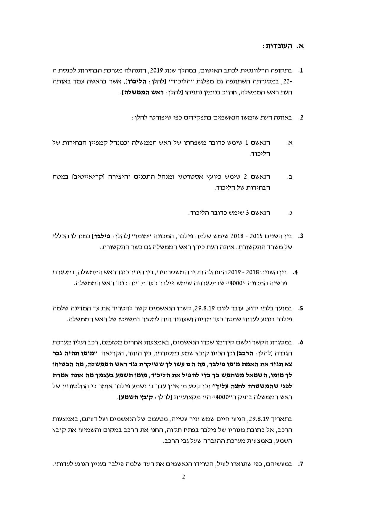 בכתב האישום נאמר, כי בשנת 2019 התנהלה חקירה משטרתית בין היתר גם נגד ראש הממשלה, בנימין נתניהו, במסגרת פרשה "4000", שבה שימש עד מדינה מנכ"ל משרד התקשורת לשעבר, שלמה פילבר.