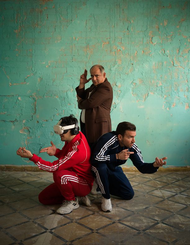 שחקני ההצגה "דיברת אליי?" יובל אנדבלד, בצלאל בורוכוב ועוז סלוק (צילום: מיכל חלבין)