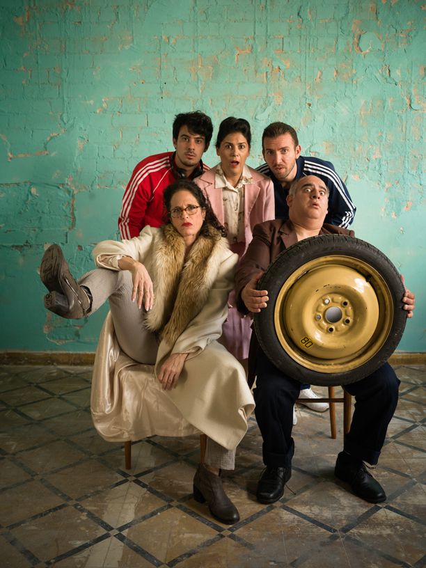 שחקני ההצגה "דיברת אליי?" עוז סלק, נתנאלה תירוש, יובל אנדבלד, בצלאל בורוכוב וענת צור (צילום: מיכל חלבין)