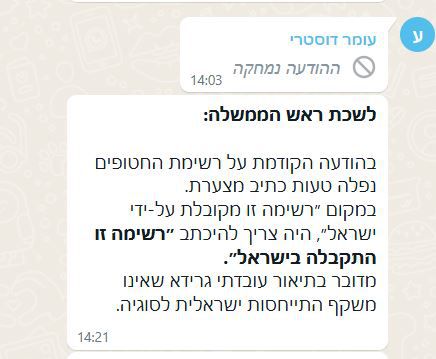 סערה בכוס התה של תא הכתבים. דובר ראש הממשלה עומר דוסטרי הסיר שני כתבים של כאן 11 מקבוצת ההודעות של דוברות ראש הממשלה.