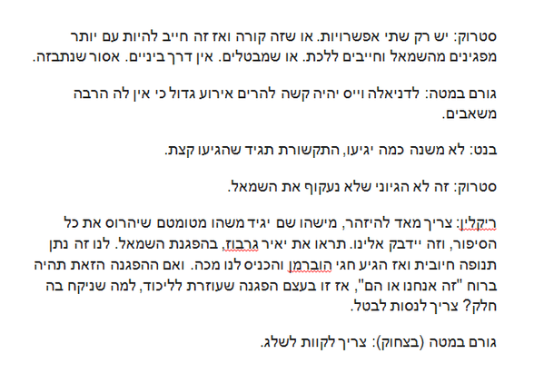 בתמלול הדברים ציין בנבג'י כי לאחר שאמרה זאת העיר גורם במטה שלדניאלה וייס יהיה קשה להרים אירוע גדול כי אין לה הרבה משאבים