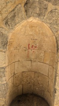 שוב זה קורה: הבוקר (רביעי) נמצאו כתובות הסתה בהר הבית בעד חמאס בצד המזרחי היכן שעובר מסלול העלייה וההליכה של היהודים בהר.