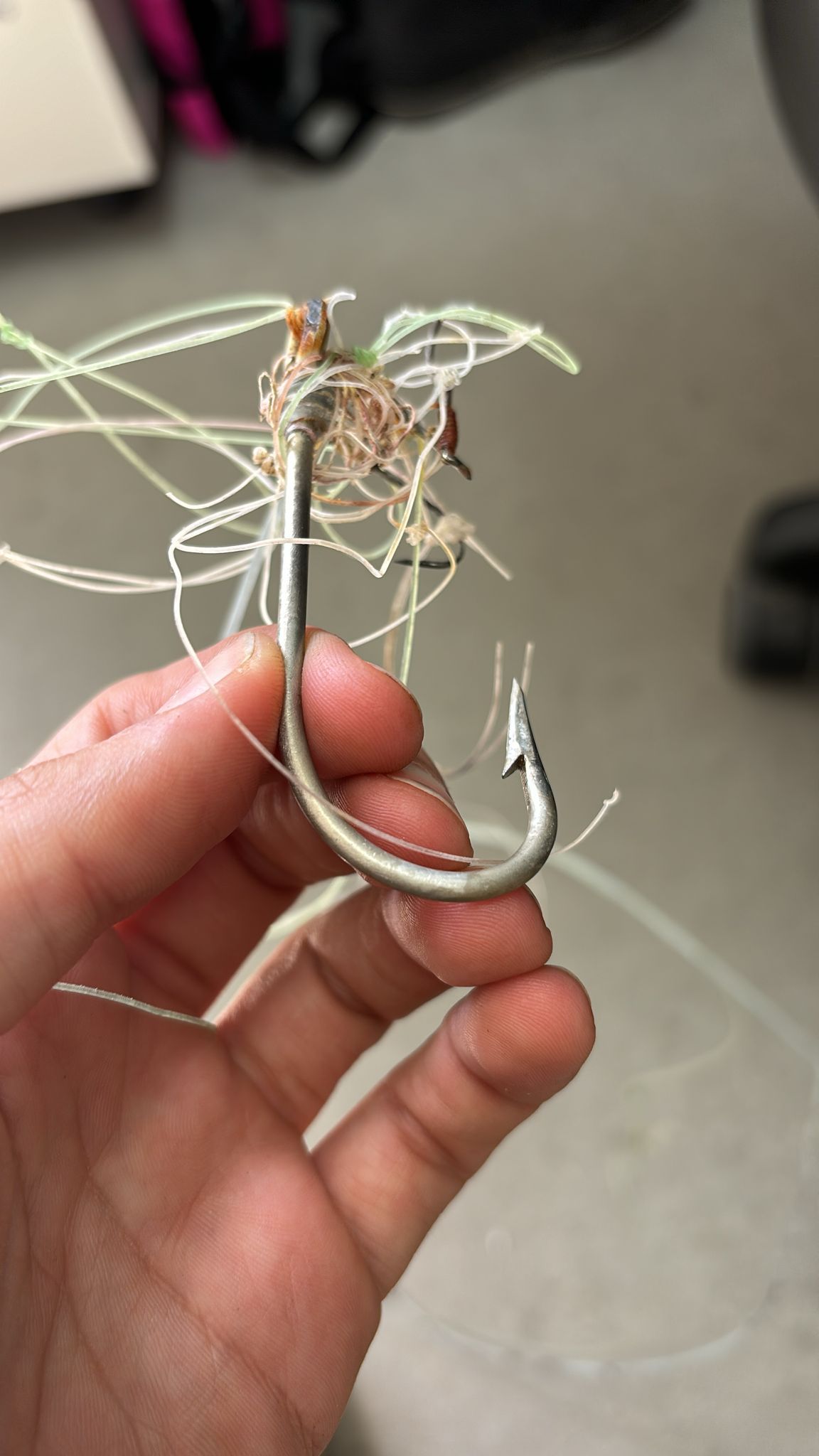 במהלך הבדיקות השגרתיות, התגלתה אמילי כשהיא סובלת מקרס דיג שנתקע סמוך לזימיה. החוקרים הסירו את הקרס בהצלחה, וגילו להפתעתם כי גם היא נמצאת בתחילת היריון. "הו מקרה נוסף שממחיש את הקשר בין פעילות דיג לשימור אוכלוסיית הכרישים", מציין ד"ר שיינין.