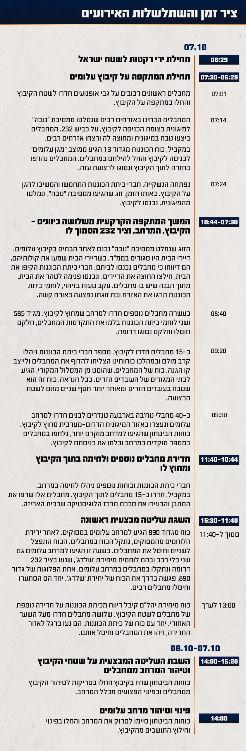 ציר הזמנים כפי שגובש ונבחן על ידי צוות התחקיר