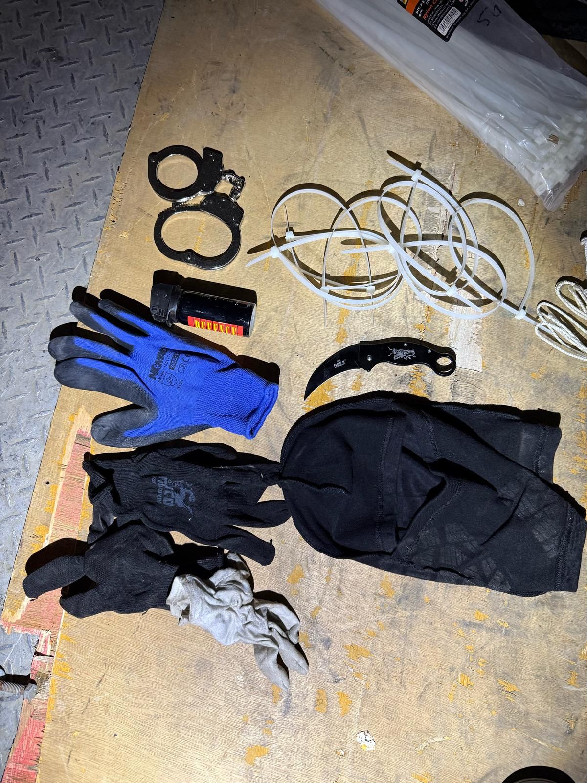 החשוד, תושב מזרח העיר בשנות ה-30 לחייו, נעצר כאמור ע״י השוטרים ובמהלך חיפוש ברכבו נתפסו סכין, אזיקונים, כפפות, גז פלפל, רעלות פנים ואזיקים.