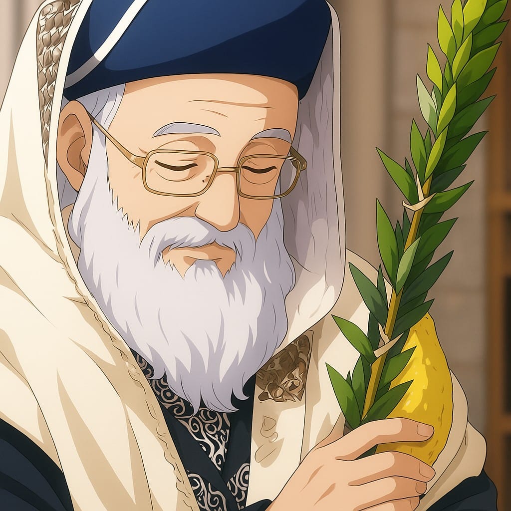 הרב מרדכי אליהו זצ"ל מברך על ארבעת המינים בסוכות