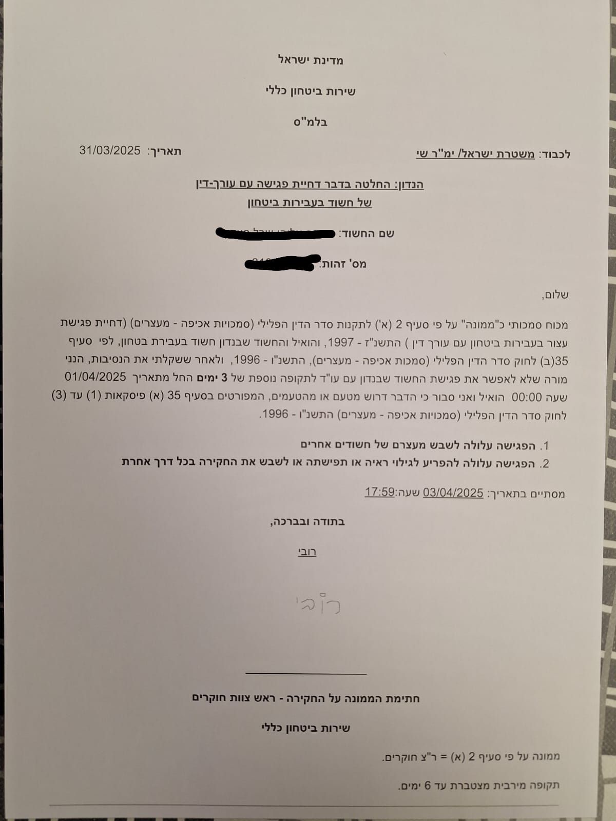 עו"ד נתי רום מסר: "מרשי חף מפשע, ללא עבר פלילי אשר שירת במילואים חודשים רבים מאז פרוץ המלחמה. הרדיפה של שב"כ אחריו תוך מניעת זכותו הבסיסית למפגש עם עורך דין חמורה ביותר. נמשיך להיאבק על זכויותיו וחפותו".