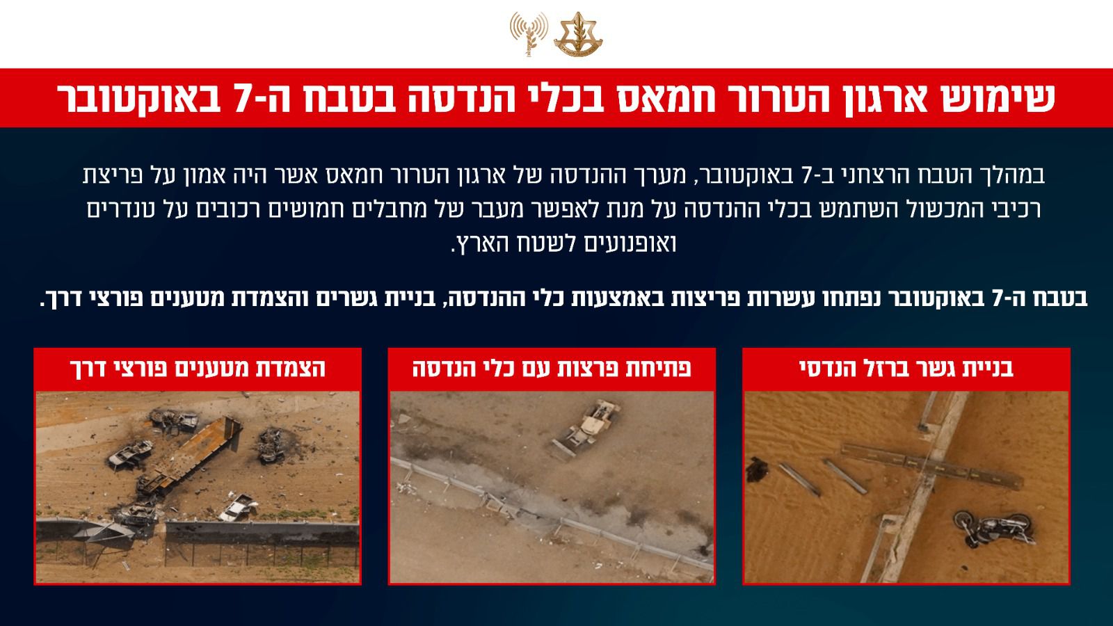 במהלך הטבח הרצחני ב-7 באוקטובר, מערך ההנדסה של ארגון הטרור חמאס אשר היה אמון על פריצת רכיבי המכשול, השתמש בכלי ההנדסה על מנת לאפשר מעבר של מחבלים חמושים רכובים על טנדרים אופנועים לשטח הארץ. בטבח ה-7 באוקטובר נפתחו עשרות פריצות באמצעות כלי ההנדסה, בניית גשרים הנדסיים והטמנת מטענים פורצי דרך.