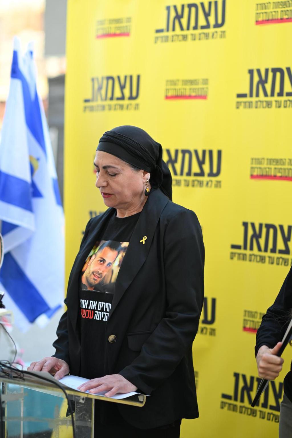 נעמי ברוך, אמו של אוריאל ברוך: ״ביום הזיכרון הזה, המדינה מתייחדת עם זכר הנופלים. אבל אנחנו המשפחות של החטופים הנרצחים לא יודעים איפה לעמוד. ובין הזיכרון לעצמאות אני שואלת: איזו עצמאות זו, כשאין לי ודאות האם הבן שלי אוריאל חי או מת? אני דורשת שהמדינה שלי, תעשה את הכל בכדי להחזיר את כל 59 החטופים שבניהם החטוף אוריאל ברוך הבן שלי. לא תיתכן עצמאות שלמה כשיש משפחות חצויות, וספק שמכרסם בנו יום ולילה. אני לא מוותרת. לא על אוריאל, ולא ועל החובה של המדינה שלי להחזיר את כל 59 החטופים״.
