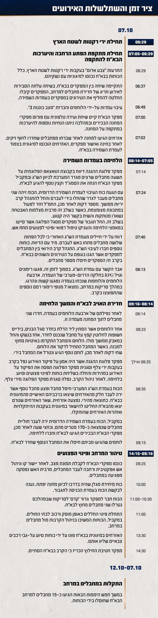 מהצהריים של ה-7.10 ועד ל-11.10, לפי הערכת צוות התחקיר במשך חמש היממות הבאות הגיעו כ-15 מחבלים למרחב הבא"ח שחוסלו בידי הכוחות.