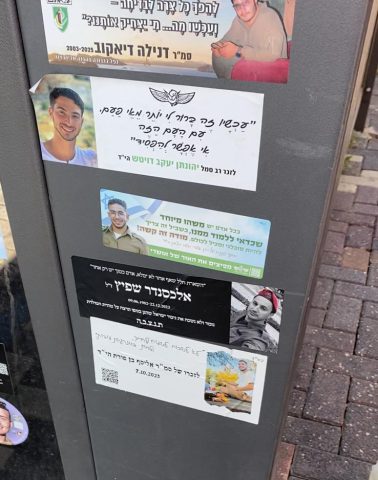 הם מופיעים בכל תחנת אוטובוס, בכל קיר ריק, בכל מסעדה. הם מגיעים לאיזורים הכי נידחים בעולם שאליהם ישראלים מוצאים את דרכם. הם מדביקים את הסטיקרים איפה שרק ניתן, ומקבצים שלימים של פנים יפות של נופלים והרוגים מופיעים במרחב הציבורים.