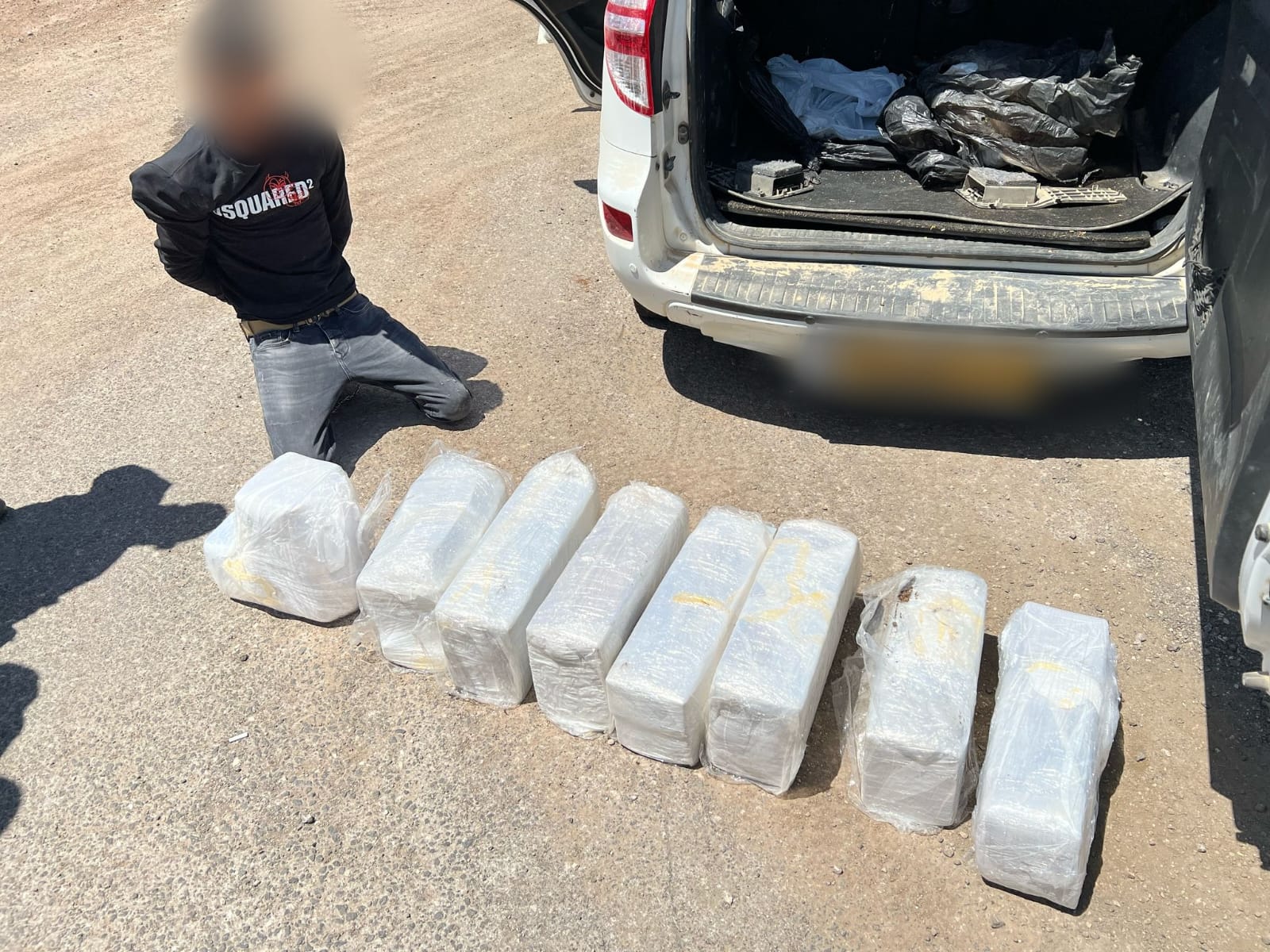 לאחר מעצר שני כלי הרכב נערך חיפוש, במהלכו נתפסו מספר חבילות המכילות חומר החשוד כסם מסוג חשיש במשקל של כ-120 ק"ג, כאשר השווי המוערך של התפיסה עומד על מיליוני שקלים.