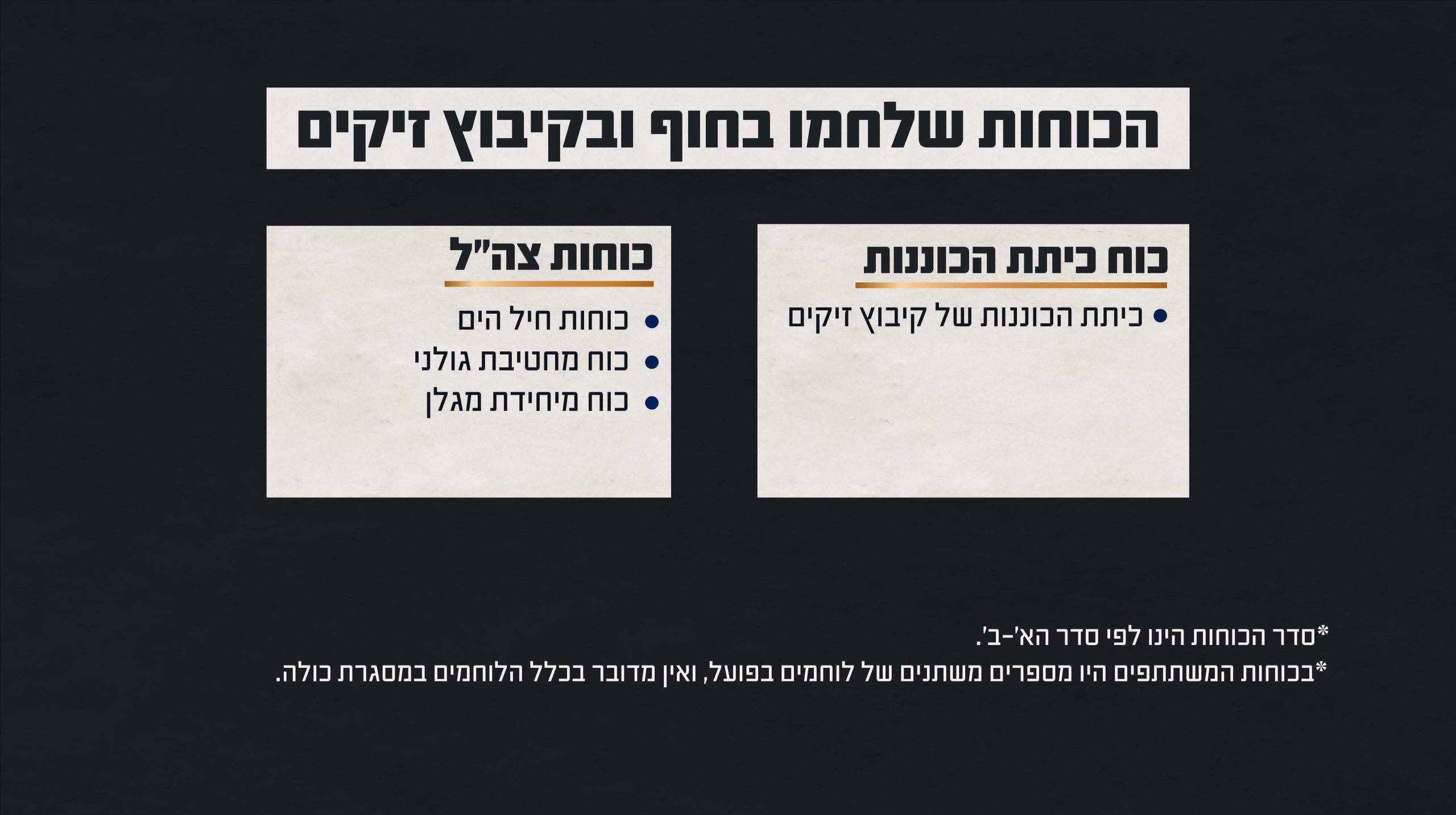 ערב מתקפת הפתע פעלו בגזרה גדוד 77 של חטיבה 7 שהוא גדוד ״יפתח״ וכוחות החטיבה הצפונית, מרחב זיקים נמצא בגזרתה של אחת הפלוגות בגדוד 51 שהוגדרה כפלוגת החוף. בגבול הימי בגזרה המזרחית, פעלה דבורה וכלי שיט מסוג צרעה היה בכוננות יירוט בקצא"א. בגזרה המערבית, היה כלי שיט מסוג שלדג במשימת ההגנה על האסדות. כוחות חיל הים נוספים היו בגבול מצרים וכוחות עתודה בנמל אשדוד. בשעה 05:30 הגדוד ביצע "כוננות עם שחר", על פי הפקודות ובהתאם להערכת המצב שהייתה ידועה באותו הזמן, ולאחריה הוכרז על מצב שגרה, גם בכוחות היבשה וגם בכוחות חיל הים. בקיבוץ זיקים נכחה כיתת הכוננות שמנתה 14 לוחמים, ובקרב עצמו השתתפו 11 לוחמים מכוח ההגנה של הקיבוץ ותושבים נוספים מהקיבוץ.