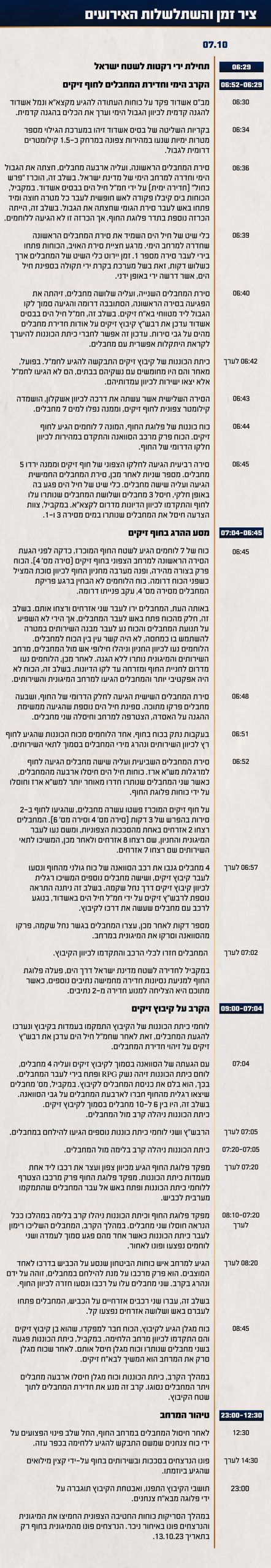 ציר הזמנים כפי שנבנה ונבחן על ידי צוות התחקיר: